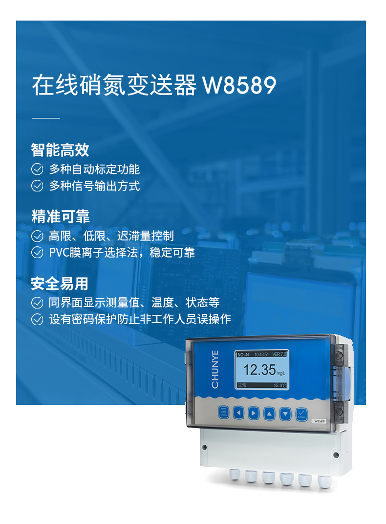工業在線硝氮監測儀是帶微處理器的水質在線監測控制儀。該儀表配置不同類型的離子電極廣泛用于電廠、石油化工、冶金電子、采礦業、造紙業、生物發酵工程、醫藥、食品飲料、環保水處理。對水溶液的離子濃度值進行連續監測和控制。