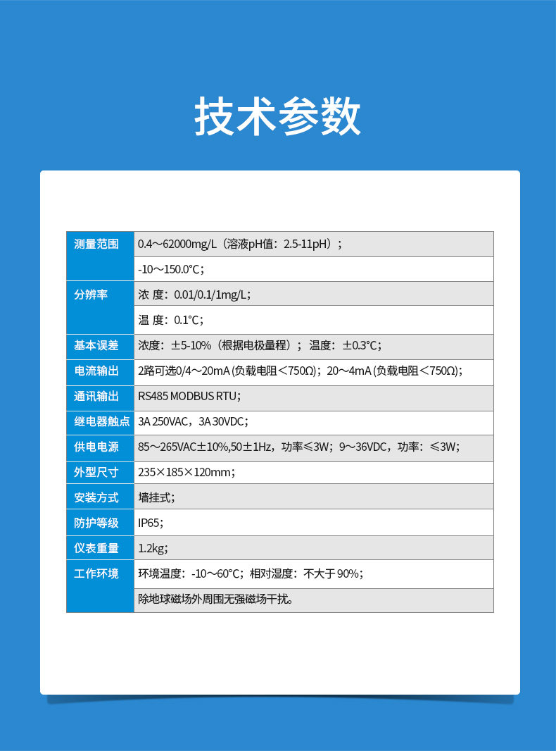 85265VAC±10%,50±1Hz,功率≤3W;